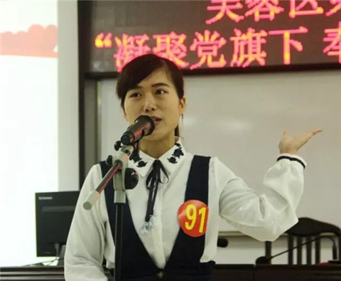 热情大方的陈兰兰则是以身边的党员医生余仁贵余主任为题材,阐述了余主任立足岗位、勇于担当的感人事迹。她通过富有感染力的声音,鲜活真实的事例和端庄的形象诠释了新时代党员的蓬勃生机。
